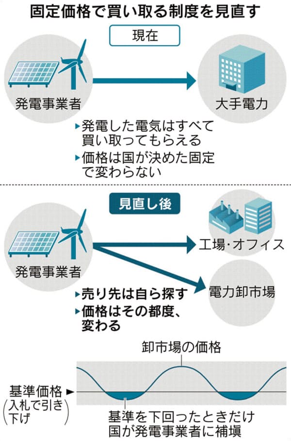 再生エネの電気を国が決めた固定価格ですべて買い取る仕組みだ。